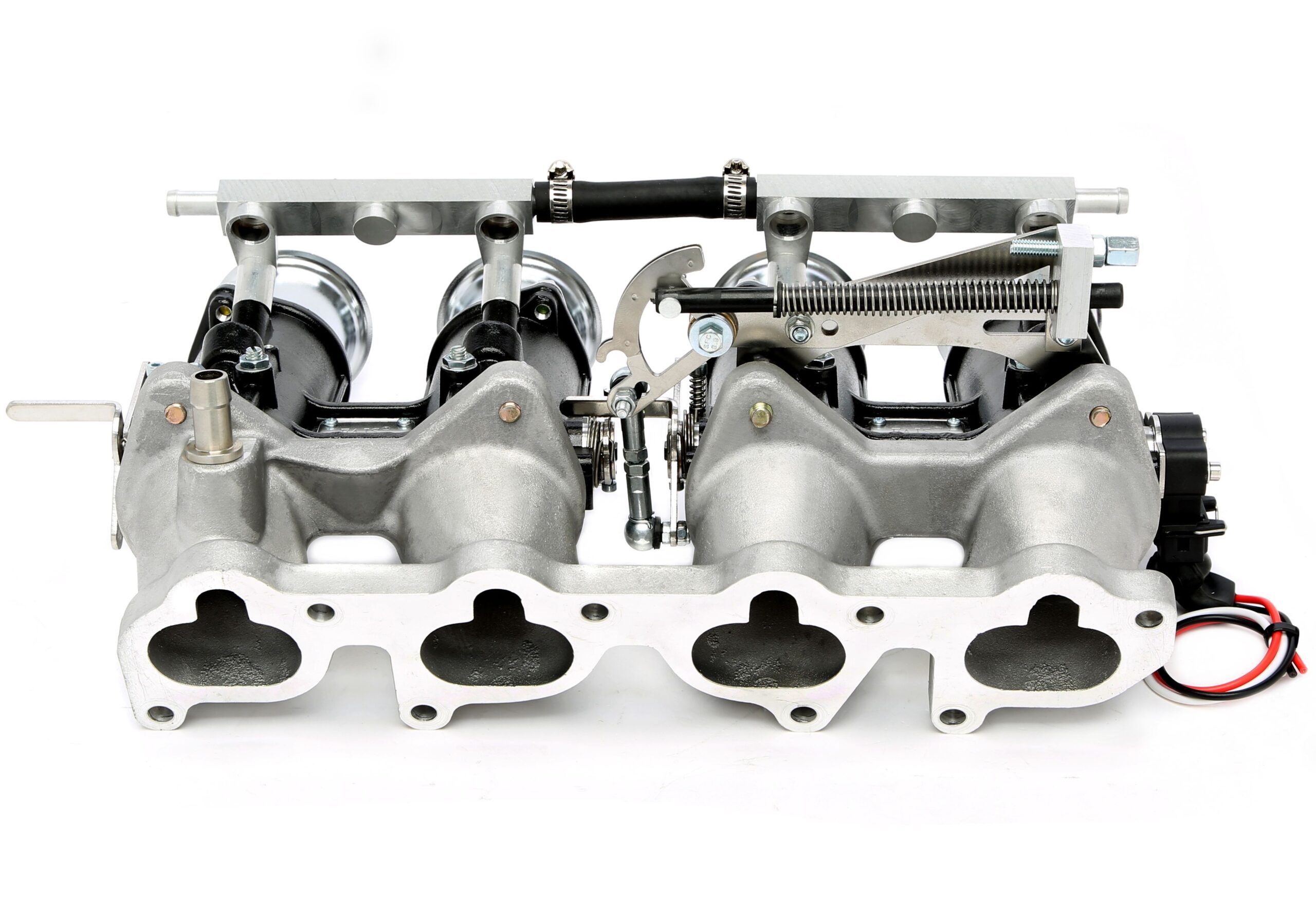 40mm DCOE Drosselklappen - Komplettkit Kit beinhaltet: Kraftstoffverteiler Menge: 2, Aluminiumtrichter Menge: 4 Gestänge, Dichtungspaket, Befestigungsschrauben Material: Aluminium, Farbe: schwarz, Höhe: 118mm Ansaugbrücke: Durchmesser Ansaugung (mm): 45 zum Beispiel: Seat Cordoba/Ibiza II (6K) - 2.0l -16V Motorcode ABF Seat Toledo (1L) - 1.8l+2.0l -16V Motorcode PL - KR - ABF VW Corrado (53I) - 2.0l - 16V Motorcode KR - 9A VW Golf II / Jetta II (19E) - 1.8l GTI - 16V Motorcode PL - KR VW Golf III (1H_) - 2.0l GTI - 16V Motorcode ABF VW Passat (35I-3A) - 1.8l+2.0l -16V Motorcode KR - 9A - ABF VW Scirocco II (53B) Motorcode PL - KR