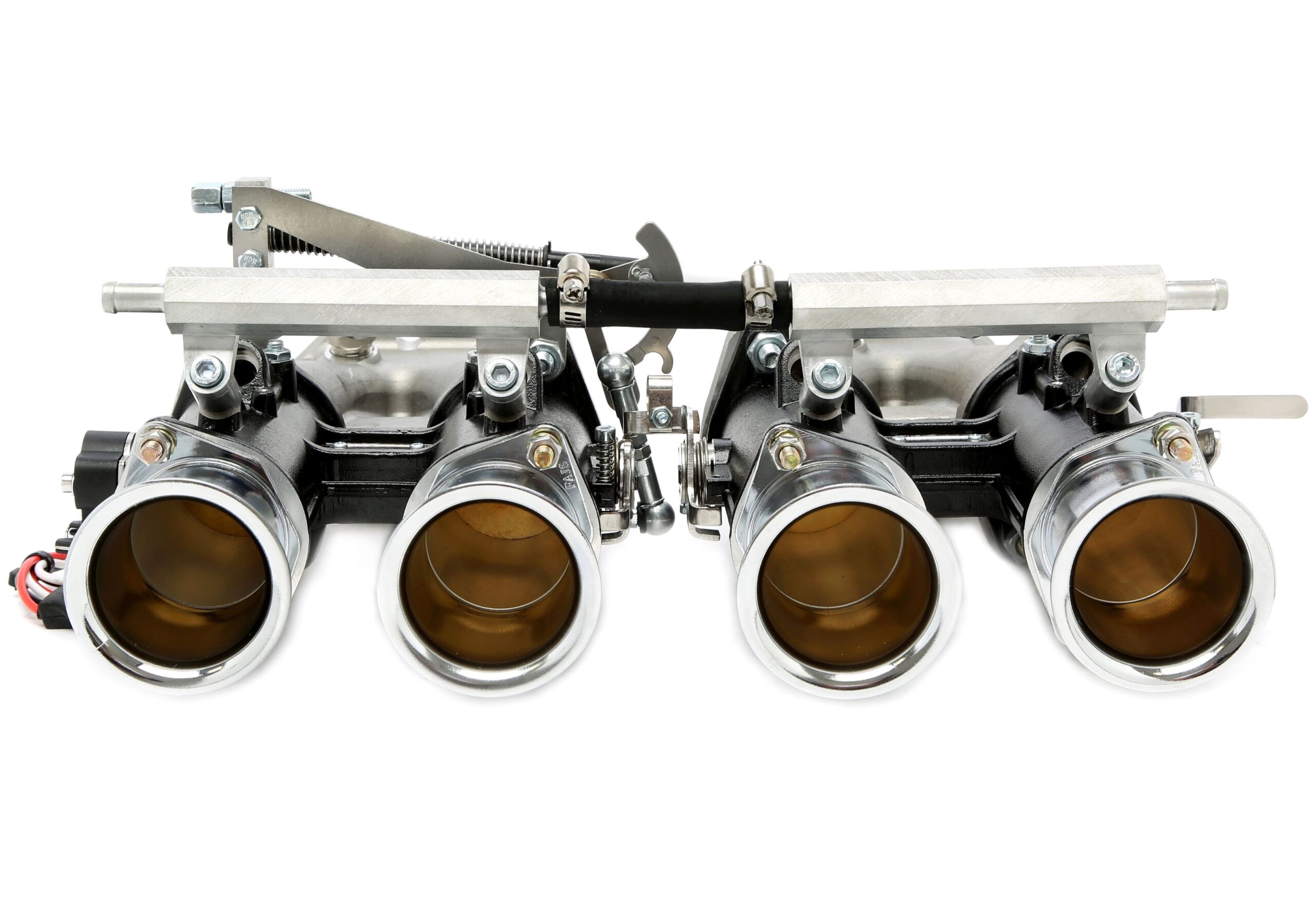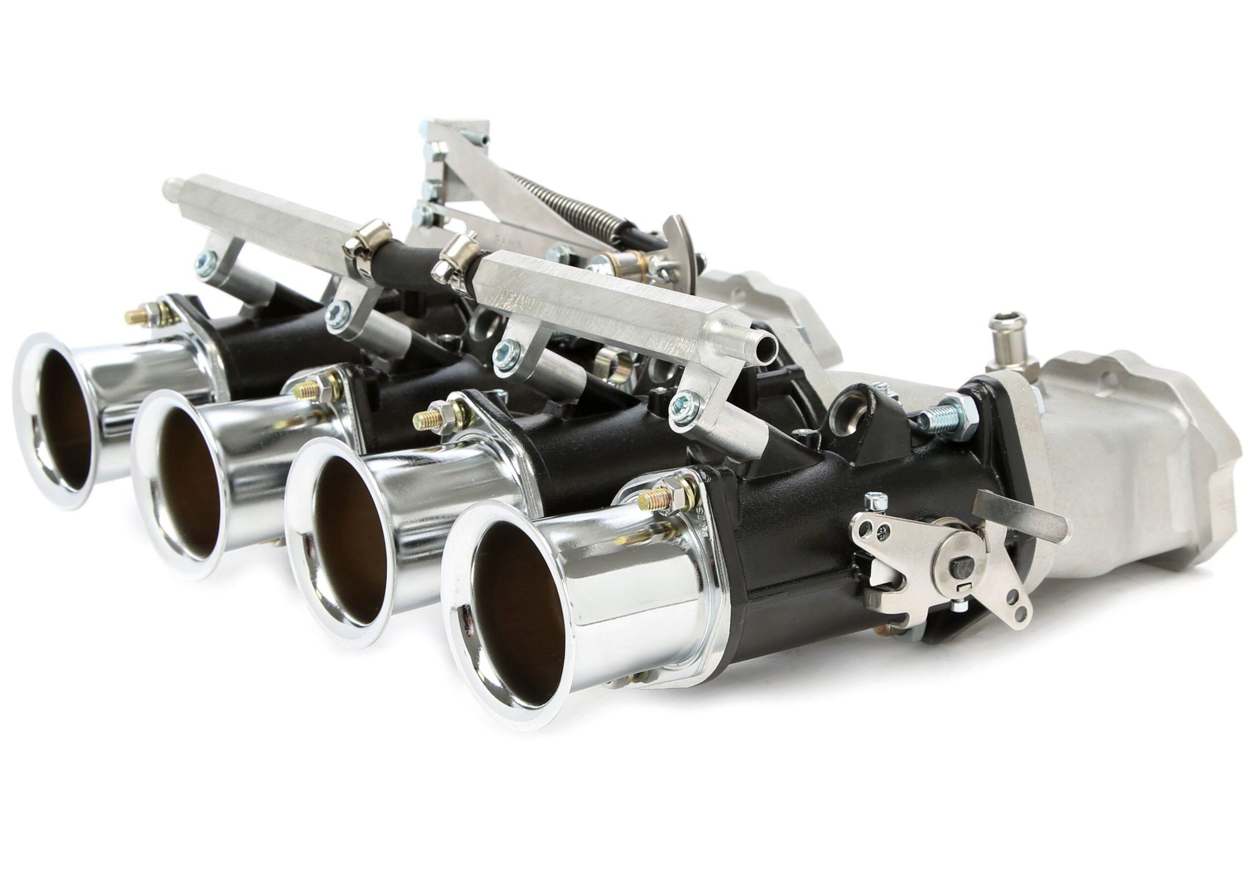 40mm DCOE Drosselklappen - Komplettkit Kit beinhaltet: Kraftstoffverteiler Menge: 2, Aluminiumtrichter Menge: 4 Gestänge, Dichtungspaket, Befestigungsschrauben Material: Aluminium, Farbe: schwarz, Höhe: 118mm Ansaugbrücke: passend für Opel 1.6-2.0l-V CIH Motoren Lange Ausführung ( ca.110mm), Lieferumfang beinhaltet keinerlei Anbaumaterial Durchmesser am Vergaserfuß: 40mm passend für zum Beispiel: Opel Ascona A+B / Manta Kadett C / Opel GT