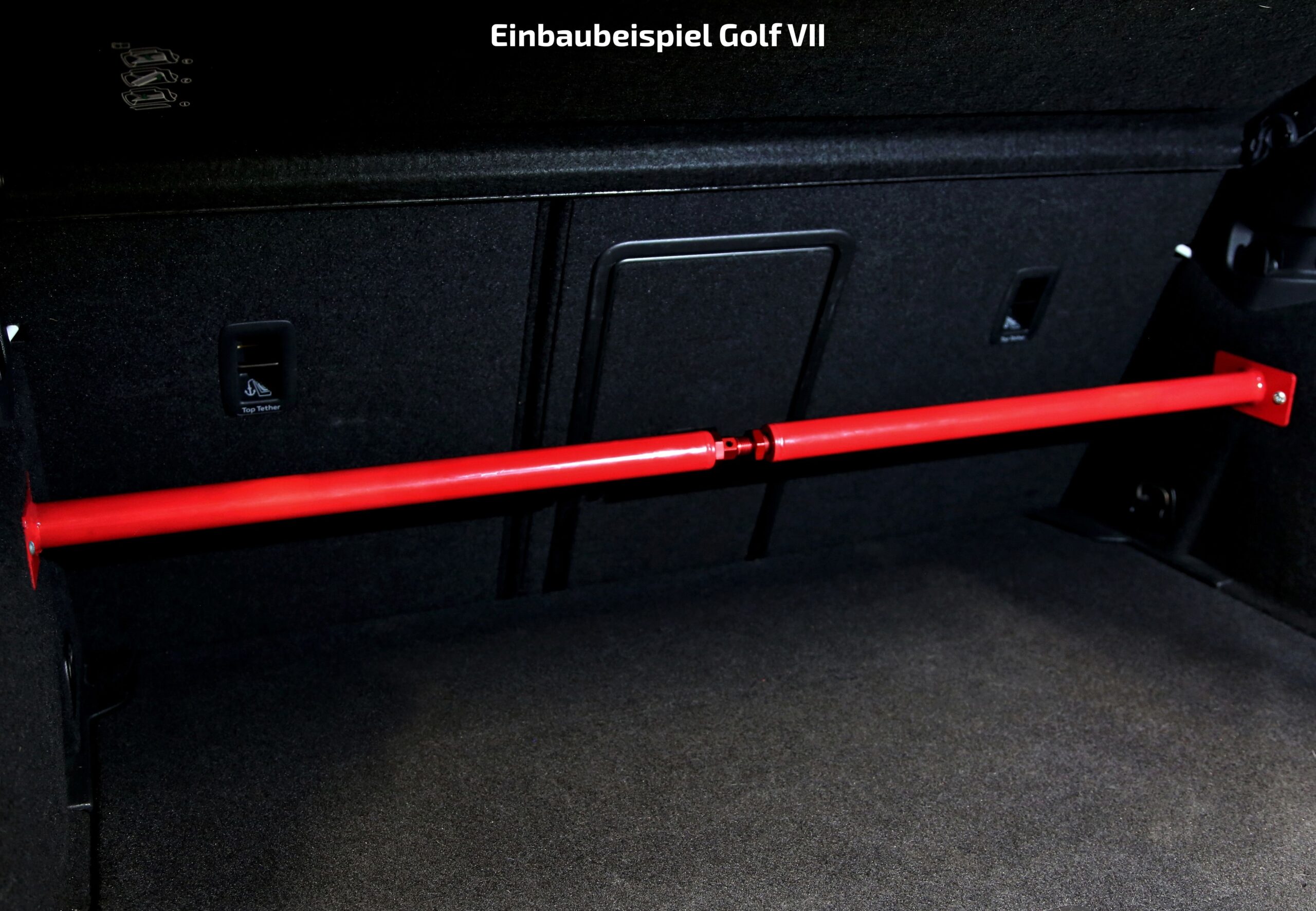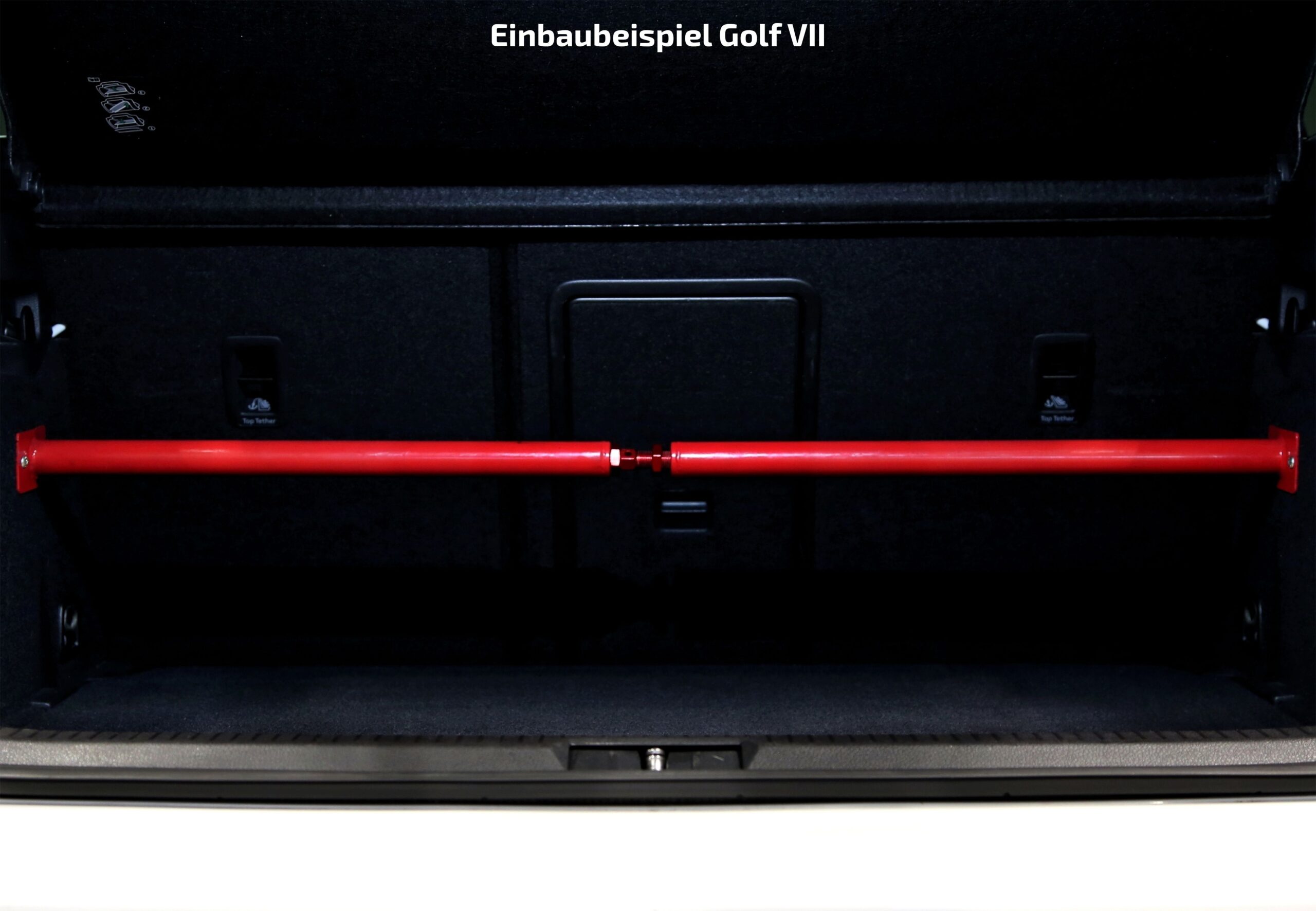 Stahl-Domstrebe hinten Farbe: Rot (Pulverbeschichtet) In der Länge per Gewinde verstellbar! passend für Audi A3 (8L) Seat Toledo (1M) Seat Leon (1M) Skoda Octavia (1U) VW Bora (1J) VW Golf IV (1J) VW Golf V+VI (1K_) VW Golf VII (AU_) VW Golf VIII (CD) VW Scirocco III (13)
